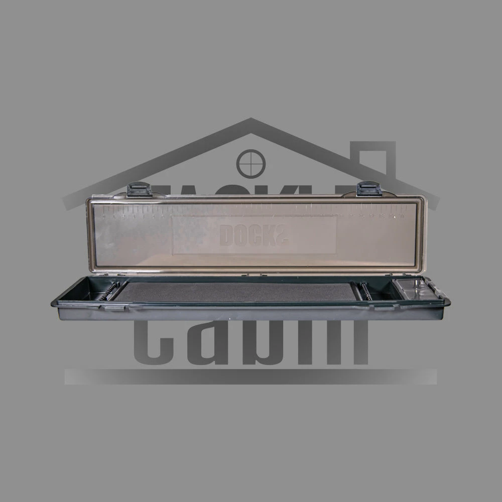 Storage space for up to 30 rigs of a maximum length of 23cm. Dark green box box with a black foam rig board