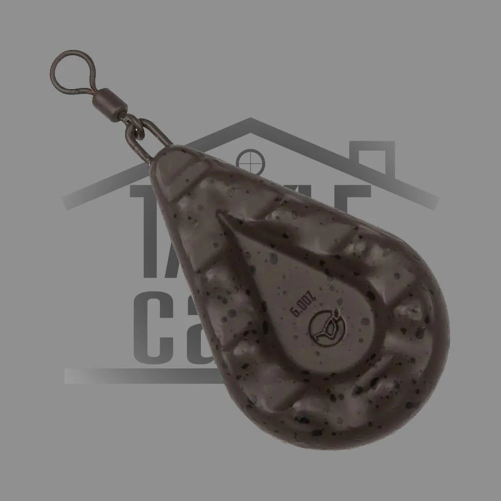 Korda Big Grippa Swivel Lead, These leads are perfect for anywhere that you need more grip, like rivers, on the sides of bars, marginal slopes or boating out at extreme range. We have recorded that you can get the same grip with a 1oz Grippa as you can with a 2oz Swivel Pear lead. So, with that in mind, you can get away with a smaller lead to do the same job, which is an advantage when fishing for barbel and chub on the rivers. Also, a lighter lead makes a smaller splash so we like using them for casting to gently sloping island margins where a round lead can roll down. The Grippas have become massively popular on the continent where carping in wide fast flowing rivers is the norm and where you have to boat out baits massive distances